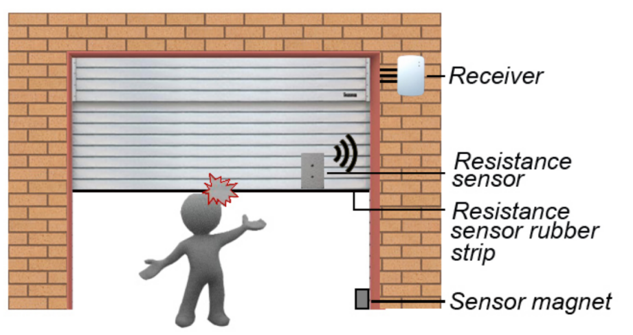 1. Das Rolltor stoppt sofort, wenn der Gummistreifen des Widerstandssensors Widerstand erfährt.